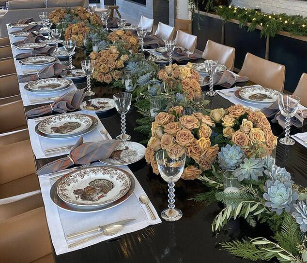 The Kardashian dynasty had a family-get together to share thanks on Thanksgiving at the home of Kris Jenner, mother of Kendal, Kylie, Khloe, Kim, and Kourtney. Family members, including the youngest, Kylie Jennner, shared images of some of the food eaten, including a charcuterie board with raw honey, on social media. Hosted at Kris Jenner’s Calabasas home on Thanksgiving day, the whole clan of her daughters and grandchildren came by to share thanks and eat some mouth-watering food they shared online. Seen in the image above, Kris decorated her dining table with beautiful porcelain plates with a festive turkey in the center.