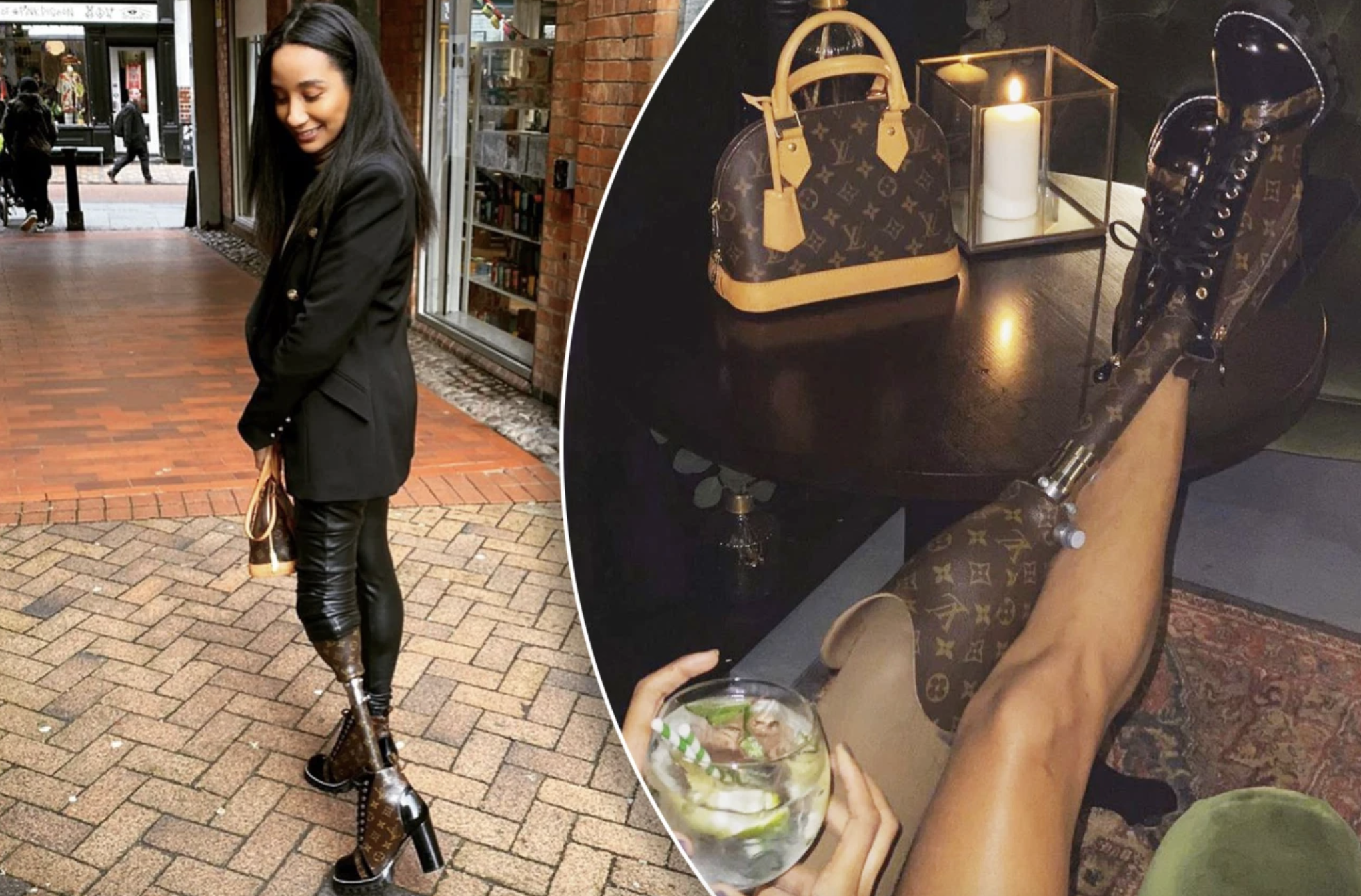 A woman created her prosthetic leg from a vintage Louis Vuitton bag after a freak taxi accident in NYC which brought her joy after her horror.