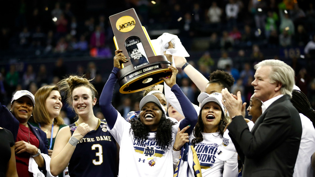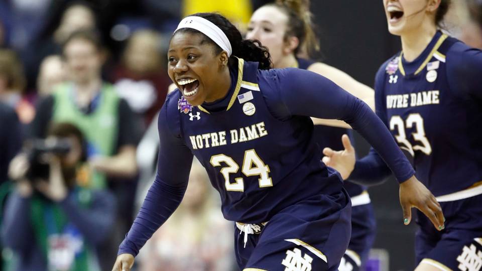 This year, Notre Dame and Mississippi State faced off in the National Championship. Notre Dame walked away with the win over MS State, 61-58, after a huge comeback with a buzzer beater by Notre Dame’s star, Arike Ogunbowale. MS State’s Teaira McCowan, a 6’7″ powerhouse, scored 18 points and had 17 rebounds, but missed a lay-up with 27 seconds left and then continued to foul out, letting Notre Dame take up the opportunity to win it. Ogunbowale did the same thing to beat UCONN in the Final Four. To get to the championship, Notre Dame beat UCONN 91-89 and MS State beat Louisville 73-63 in the Final Four. To watch the highlights from the championship game, click here.