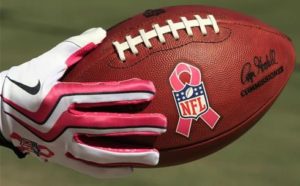 The NFL Players Association and the American Cancer Society are teaming for the seventh year to support October’s National Breast Cancer Awareness Month with “A Crucial Catch: Annual Screening Saves Lives,” campaign. The campaign reminds women about having regular mammograms. All of the proceeds from pink products sold on NFL Auction go to the American Cancer Society; the NFL does not profit from any of the sales. Money raised through A Crucial Catch supports the American Cancer Society’s Community Health Advocates implementing Nationwide Grants for Empowerment, known as CHANGE, a program that provides breast cancer screenings to women in underprivileged communities.